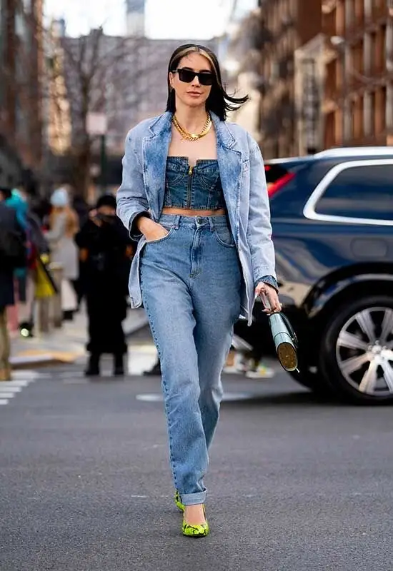 Hoy en día, el doble denim no solo es popular en las calles, sino también en las pasarelas, donde los diseñadores continúan explorando nuevas formas de jugar con la textura y el color del denim. Ya sea en tonos monocromáticos o con contrastes atrevidos, el denim sigue siendo un material que ofrece versatilidad y creatividad. Sin embargo, dominar este estilo requiere un ojo atento para los detalles y un buen sentido de equilibrio en el look.